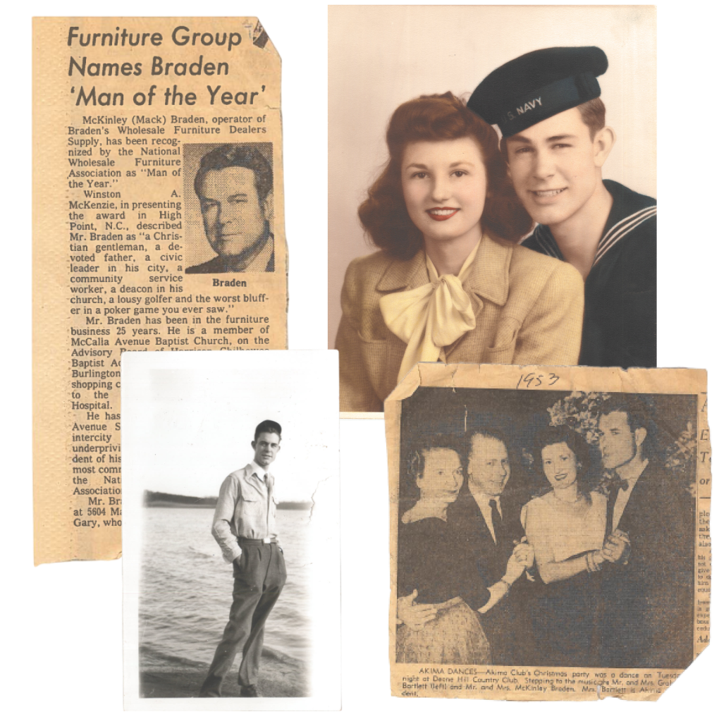 Braden’s Furniture was founded by McKinley & Mildred Braden on May 1, 1956, in Knoxville, TN. For more than three decades, Braden’s Wholesale Furniture Co., Inc. operated as a true wholesale distributor, serving independent retail furniture stores across seven states. With a designer showroom in downtown Knoxville and a traveling sales team, the company built a strong reputation for quality, service, and craftsmanship—laying the foundation for the Braden’s legacy that continues today.